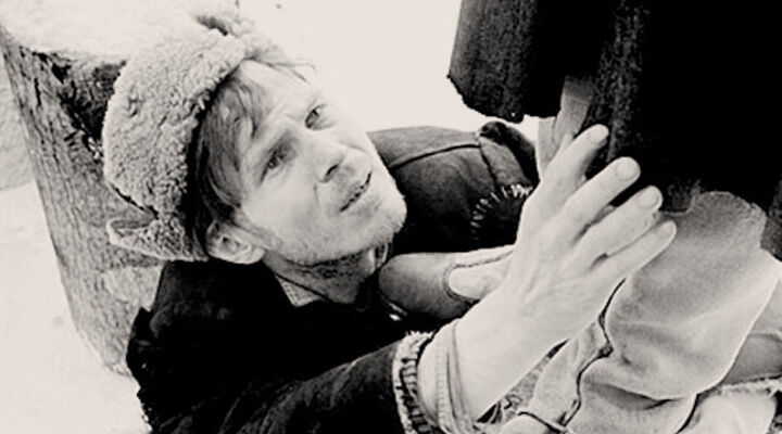 Они шли через поле к дороге и внезапно уловили впереди шум. Кто-то ехал по дороге. «Давай бегом», — скомандовал Рыбак. Уже видны были две подводы с людьми. Оставалась ещё надежда, что это крестьяне, тогда все обошлось бы. «А ну, стой! — донёсся злой окрик. — Стой, стрелять будем!» И Рыбак прибавил в беге. Сотников отстал. Он упал на склоне — закружилась голова. Сотников испугался, что не сможет подняться. Нашарил в снегу винтовку и выстрелил наугад. Побывав в добром десятке безнадёжных ситуаций, Сотников не боялся смерти в бою. Боялся только стать обузой. Он смог сделать ещё несколько шагов и почувствовал, как ожгло бедро и по ноге потекла кровь. Подстрелили. Сотников снова залёг и начал отстреливаться по уже различимым в темноте преследователям. После нескольких его выстрелов все стихло. Сотников смог разглядеть фигуры, возвращавшиеся к дороге.