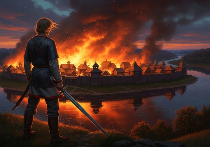 После смерти кормильца семья Мирошки голодала и еле пережила зиму. Весной на Горелую Весь совершил набег соседний князь. Воины ограбили и сожгли деревню, а жителей увели в плен.