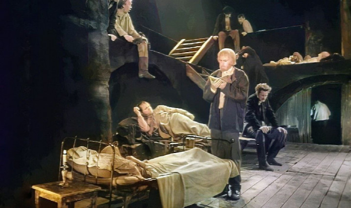 Российский город, предположительно 1900-й год. В ночлежку, где жили изгои общества, пришёл старик Лука.