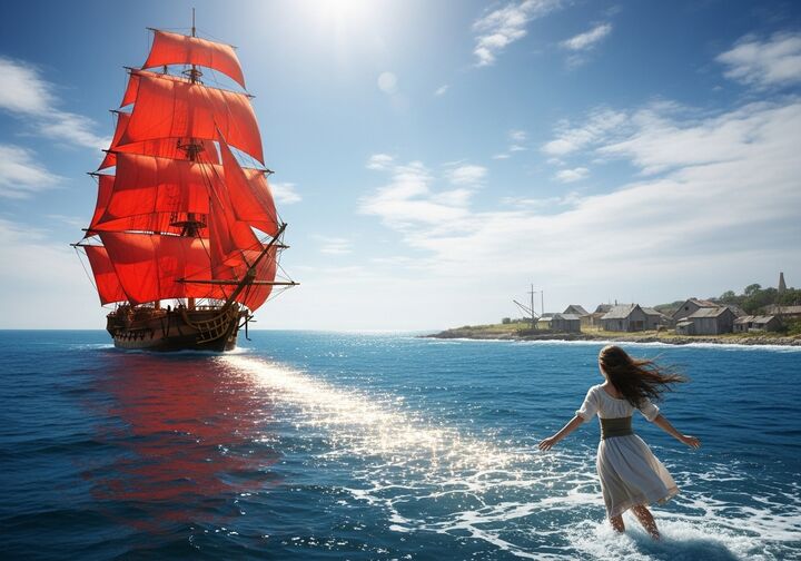 Простой бедной девушке когда-то предсказали, что за ней приплывёт принц на корабле с алыми парусами. Несмотря на насмешки окружающих, девушка ждала принца. Предсказание сбылось, и она уплыла с ним.