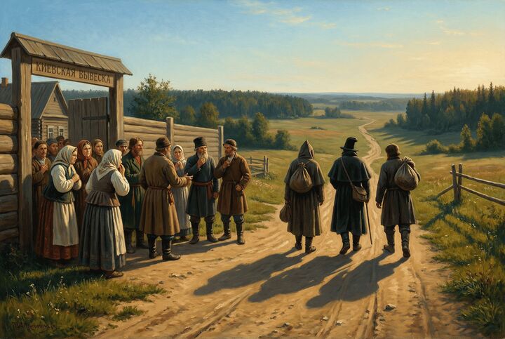 Горожане заметили, что мастера отправились не в Московскую заставу, а в противоположную сторону — Киевскую. Это породило слухи, что оружейники отправились поклониться покойным угодникам и посоветоваться с кем-либо из живых святых отцов, которых в Киеве всегда было в избытке.