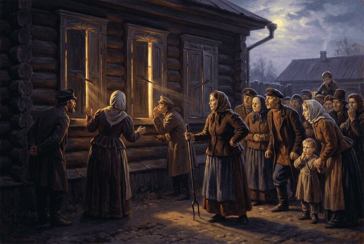 Три мастера помолились у древней иконы, заперлись в доме и приступили к тайной работе. Из дома они не выходили несколько дней. Горожане пытались разными способами выведать их секрет, но безуспешно.