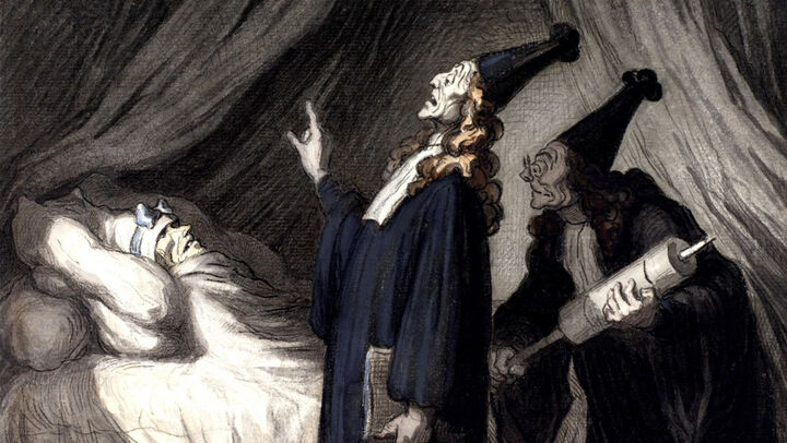 Как ни бился Беральд, брат его насмерть стоял на своём. Последним известным Беральду средством одолеть слепую веру в докторов было как-нибудь сводить Аргана на одну из комедий Мольера, в которых так здорово достаётся представителям медицинской лженауки. Но Арган о Мольере слышать не хотел и предрекал ему, брошенному врачами на произвол судьбы, страшную кончину.
