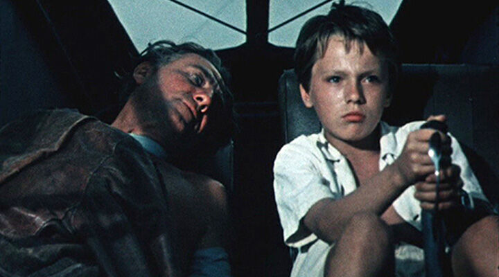 Лётчик, потерявший работу, пытается добыть денег, снимая акул. На съёмки он берёт десятилетнего сына, отношения с которым у него не ладятся. Акула нападает на лётчика, и сын спасает израненного отца.