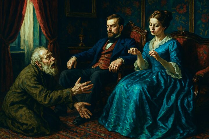 Богатый купец решил объявить себя банкротом, чтобы не платить кредиторам. Он переписал своё имущество на зятя, надеясь, что тот его не оставит. Но зять обманул купца, а дочь отреклась от него.