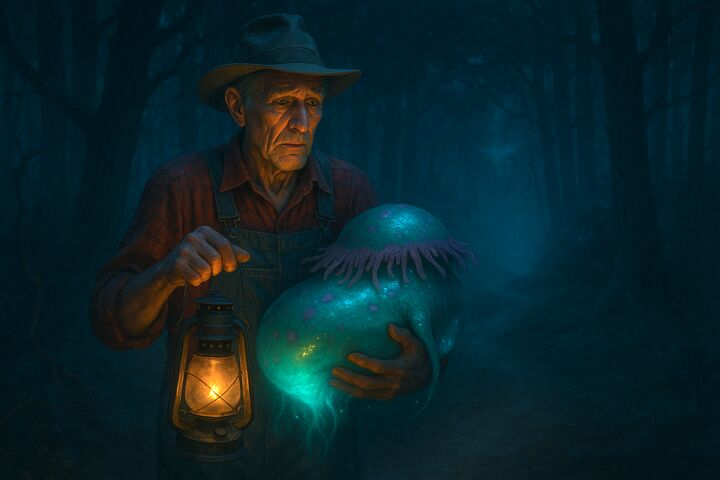 Вернувшись на ферму, Моуз похоронил существо в углу сада. Досок для гроба у него не было, и фермер завернул пришельца в старую скатерть.