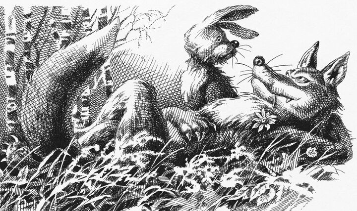 Однажды заяц решил блеснуть перед своей зайчихой. Он начал было ругать волков и даже придумал систему, по которой они должны есть зайцев не в случайном порядке, а по очереди, но тут услышал шорох и вместо зайчихи, которая давно сбежала, увидел рядом с собой лису.