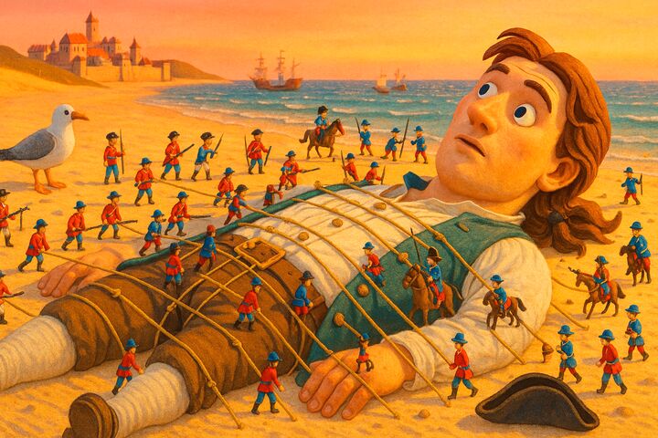 Лилипутам Гулливер казался великаном, они испугались его, связали, пока он спал, и посадили на цепь. Вскоре император Лилипутии убедился, что великан добрый и великодушный, и освободил его. Гулливер начал путешествовать по стране, изучая её культуру и общественное устройство.