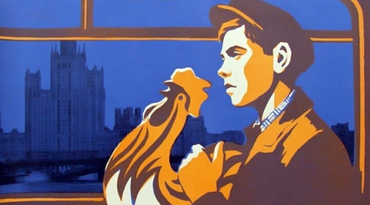 В поезде вместе с Севой едет большая группа ребят. Их сопровождает вожатая Наташа. Она настолько бдительна, что Сева называет её про себя «Детектив». На одной из остановок Сева хочет послать телеграмму отцу, но Наташа всё время рядом, и мальчик не решается этого сделать. В привокзальном киоске он покупает отцу подарок — глиняную вазу с двумя яркими петухами.